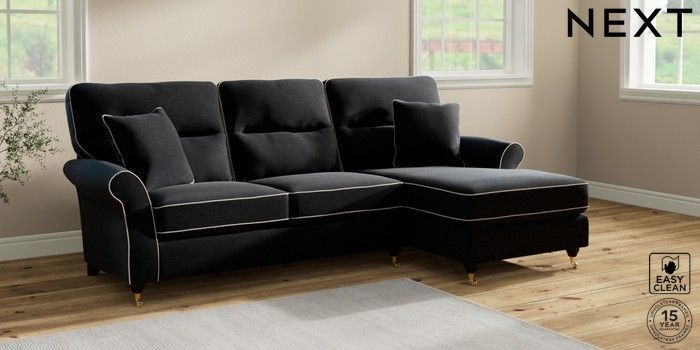 7.3.1 Buy Ashford Highback Medium Sofa Chaise - Right Hand Fine Chenille with Contrast Black and Oyster Castor - Dark from the Next UK online shop Click here to use our accessible website