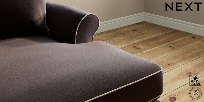 7.3.1 Buy Ashford Highback Medium Sofa Chaise - Right Hand Fine Chenille with Contrast Chocolate Brown and Oyster Castor - Mid from the Next UK online shop Click here to use our accessible website