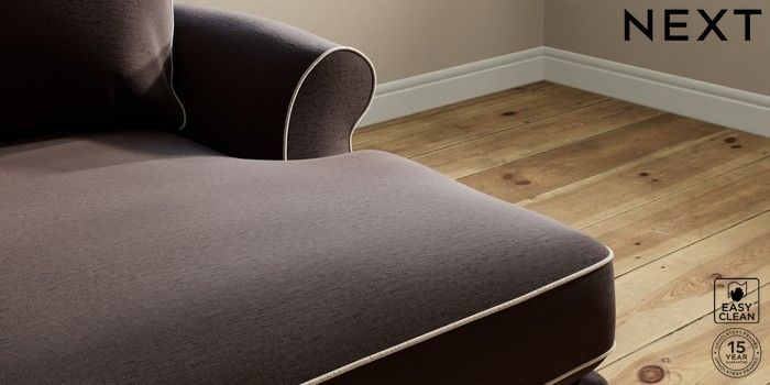 7.3.1 Buy Ashford Highback Medium Sofa Chaise - Right Hand Fine Chenille with Contrast Chocolate Brown and Oyster Modern Turned Metal Cap - Mid from the Next UK online shop Click here to use our accessible website