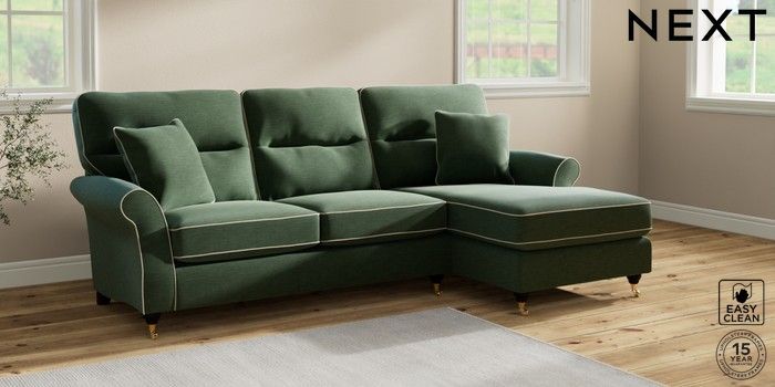 7.3.1 Buy Ashford Highback Medium Sofa Chaise - Right Hand Fine Chenille with Contrast Mid Khaki Green and Oyster Castor - Dark from the Next UK online shop Click here to use our accessible website