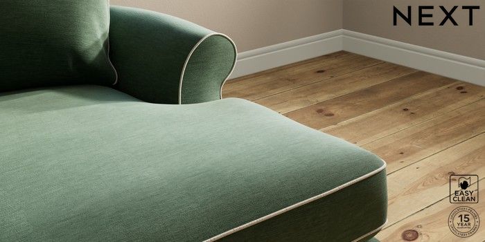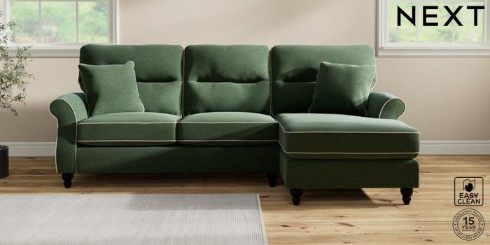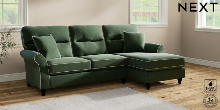 7.3.1 Buy Ashford Highback Medium Sofa Chaise - Right Hand Fine Chenille with Contrast Mid Khaki Green and Oyster Low Turned - Dark from the Next UK online shop Click here to use our accessible website