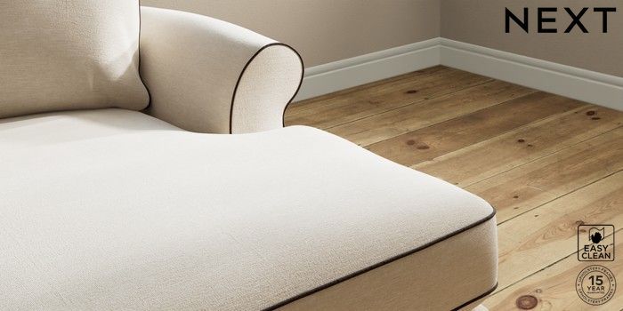 7.3.1 Buy Ashford Highback Medium Sofa Chaise - Right Hand Fine Chenille with Contrast Oyster and Chocolate Brown Low Turned - Mid from the Next UK online shop Click here to use our accessible website