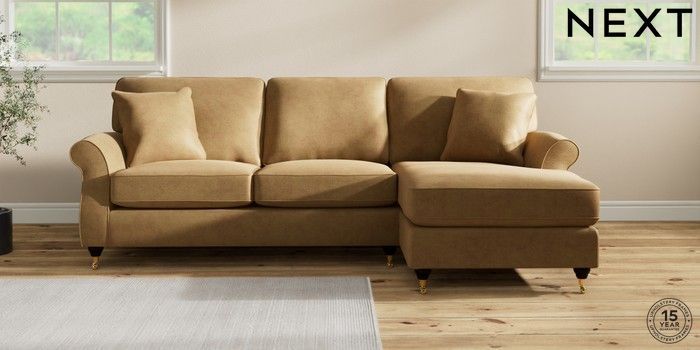 6.12.1 Buy Ashford Highback Medium Sofa Chaise - Right Hand Luxe Chenille Honey Yellow Castor - Dark from the Next UK online shop Click here to use our accessible website