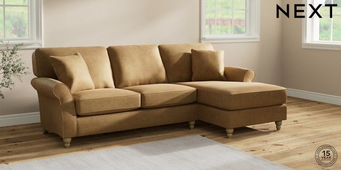 6.12.1 Buy Ashford Highback Medium Sofa Chaise - Right Hand Luxe Chenille Honey Yellow Low Turned - Light from the Next UK online shop Click here to use our accessible website