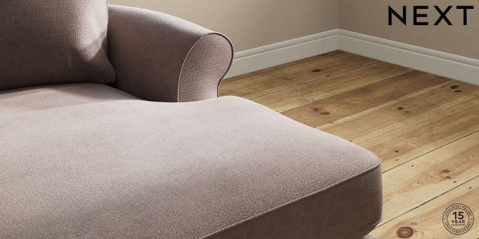 6.12.1 Buy Ashford Highback Medium Sofa Chaise - Right Hand Luxe Chenille Mink Brown Castor - Dark from the Next UK online shop Click here to use our accessible website