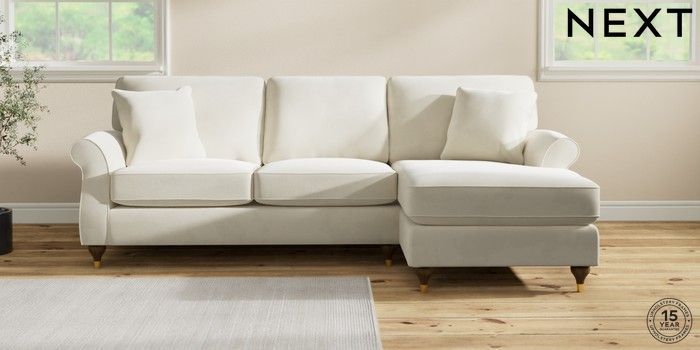 7.0.3 Buy Ashford Highback Medium Sofa Chaise - Right Hand Luxe Chenille Oyster Modern Turned Metal Cap - Mid from the Next UK online shop Click here to use our accessible website