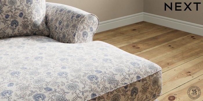 7.3.1 Buy Ashford Highback Medium Sofa Chaise - Right Hand Relaxed Linen Look Print Woodblock Floral Blue Low Turned - Mid from the Next UK online shop Click here to use our accessible website