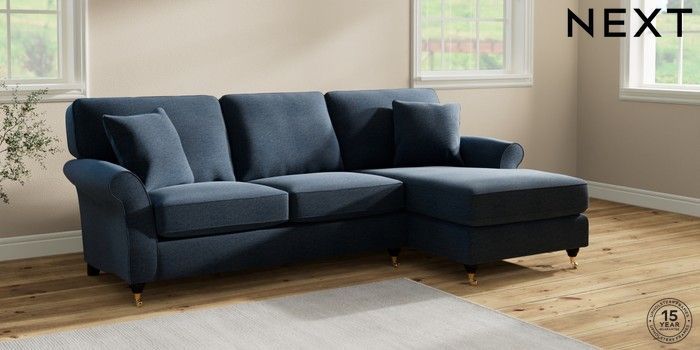 6.12.1 Buy Ashford Highback Medium Sofa Chaise - Right Hand Ripple Chenille Dark Blue Castor - Dark from the Next UK online shop Click here to use our accessible website