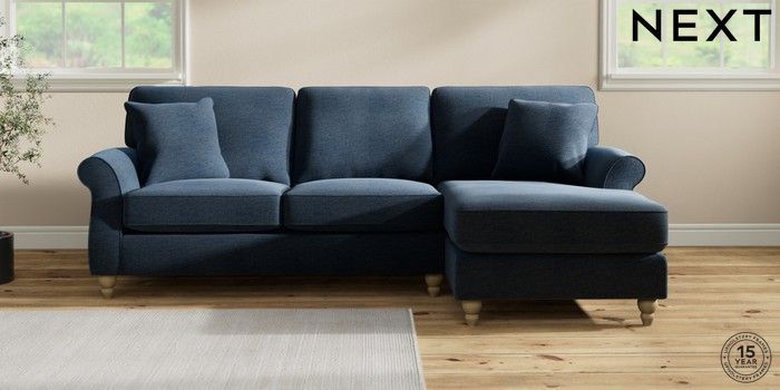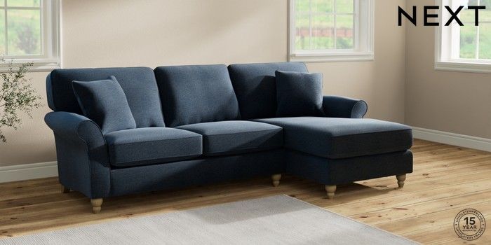 6.12.1 Buy Ashford Highback Medium Sofa Chaise - Right Hand Ripple Chenille Dark Blue Low Turned - Light from the Next UK online shop Click here to use our accessible website