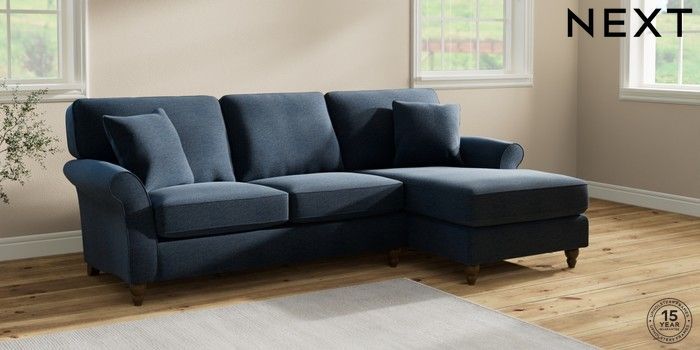 6.12.1 Buy Ashford Highback Medium Sofa Chaise - Right Hand Ripple Chenille Dark Blue Low Turned - Mid from the Next UK online shop Click here to use our accessible website