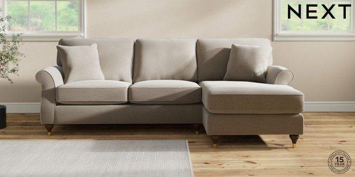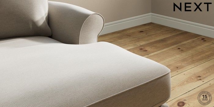 6.12.1 Buy Ashford Highback Medium Sofa Chaise - Right Hand Ripple Chenille Light Natural Modern Turned Metal Cap - Mid from the Next UK online shop Click here to use our accessible website