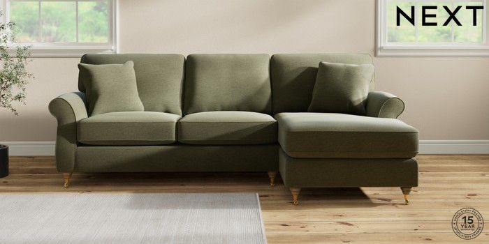 6.12.1 Buy Ashford Highback Medium Sofa Chaise - Right Hand Ripple Chenille Mid Moss Green Castor - Light from the Next UK online shop Click here to use our accessible website