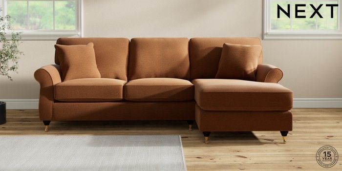 6.12.1 Buy Ashford Highback Medium Sofa Chaise - Right Hand Ripple Chenille Mid Rust Brown Castor - Dark from the Next UK online shop Click here to use our accessible website