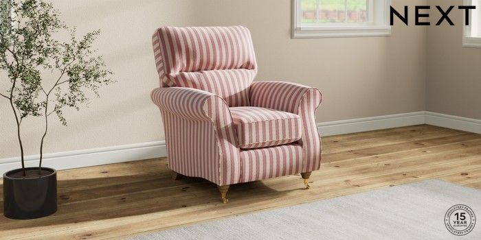 7.3.1 Buy Ashford Highback Small Armchair Bold Chenille Stripe Dark Pink Castor - Light from the Next UK online shop Click here to use our accessible website