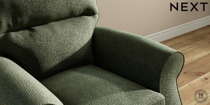6.12.13 Buy Ashford Highback Small Armchair Boucle Chenille Dark Moss Green Modern Turned Metal Cap - Mid from the Next UK online shop Click here to use our accessible website