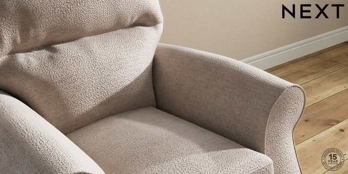 6.12.1 Buy Ashford Highback Small Armchair Boucle Chenille Light Natural Modern Turned Metal Cap - Mid from the Next UK online shop Click here to use our accessible website