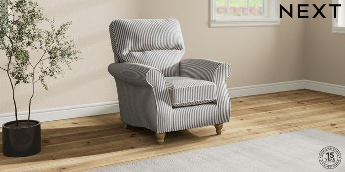 6.12.1 Buy Ashford Highback Small Armchair Chenille Stripe Slate Blue Low Turned - Light from the Next UK online shop Click here to use our accessible website