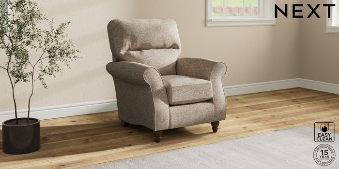 6.12.1 Buy Ashford Highback Small Armchair Chunky Boucle Easy Clean Mid Natural Low Turned - Mid from the Next UK online shop Click here to use our accessible website