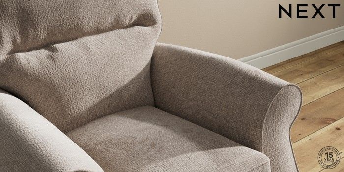 6.12.1 Buy Ashford Highback Small Armchair Chunky Chenille Light Dove Modern Turned Metal Cap - Mid from the Next UK online shop Click here to use our accessible website