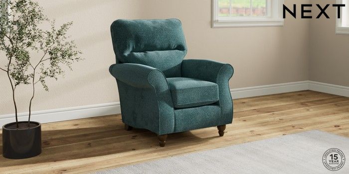 6.12.1 Buy Ashford Highback Small Armchair Chunky Chenille Mid Teal Green Low Turned - Mid from the Next UK online shop Click here to use our accessible website