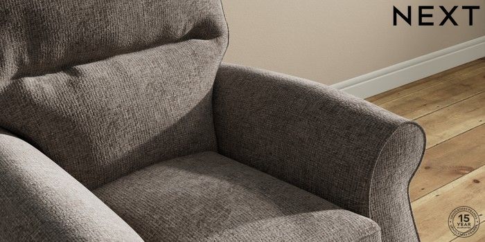 6.12.1 Buy Ashford Highback Small Armchair Chunky Chenille Mink Brown Castor - Light from the Next UK online shop Click here to use our accessible website