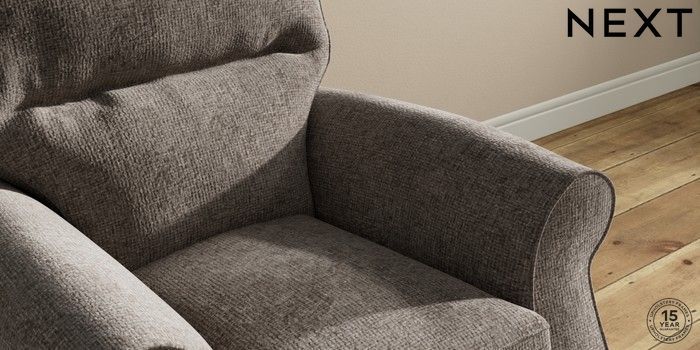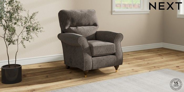 6.12.1 Buy Ashford Highback Small Armchair Chunky Chenille Mink Brown Modern Turned Metal Cap - Mid from the Next UK online shop Click here to use our accessible website