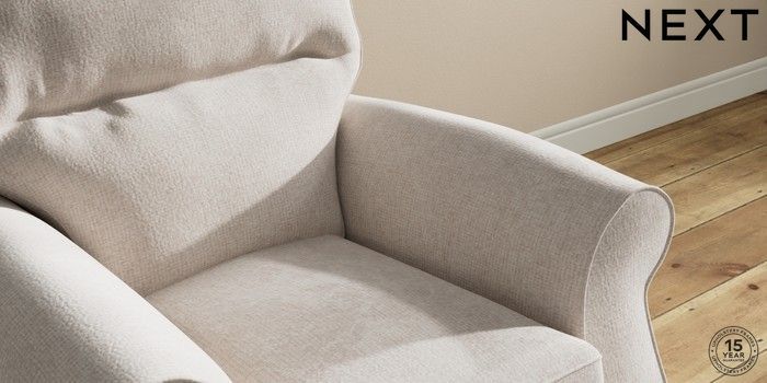6.12.1 Buy Ashford Highback Small Armchair Chunky Chenille Oyster Modern Turned Metal Cap - Mid from the Next UK online shop Click here to use our accessible website