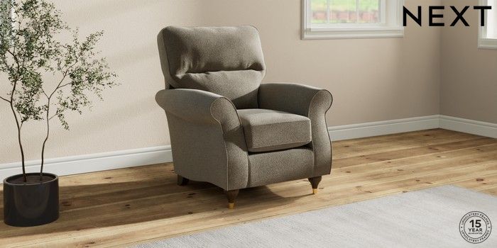 6.12.1 Buy Ashford Highback Small Armchair Chunky Marl Light Olive Green Modern Turned Metal Cap - Mid from the Next UK online shop Click here to use our accessible website