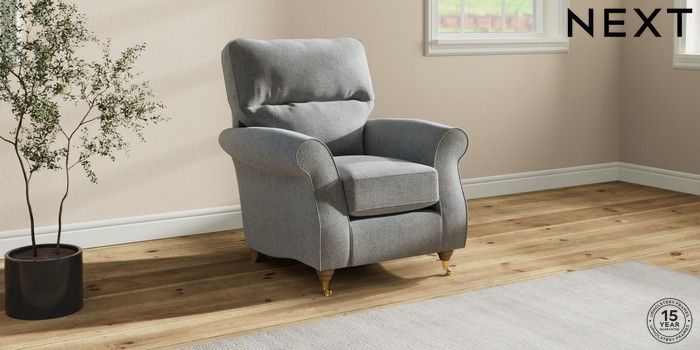 6.12.1 Buy Ashford Highback Small Armchair Chunky Marl Mid Grey Castor - Light from the Next UK online shop Click here to use our accessible website