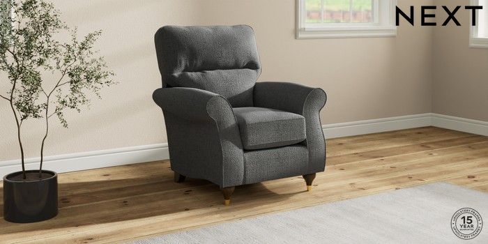 6.12.1 Buy Ashford Highback Small Armchair Chunky Texture Dark Grey Modern Turned Metal Cap - Mid from the Next UK online shop Click here to use our accessible website