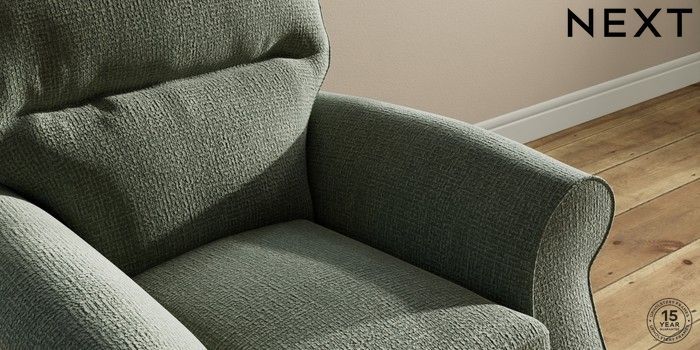 6.12.1 Buy Ashford Highback Small Armchair Chunky Texture Mid Forest Green Low Turned - Light from the Next UK online shop Click here to use our accessible website