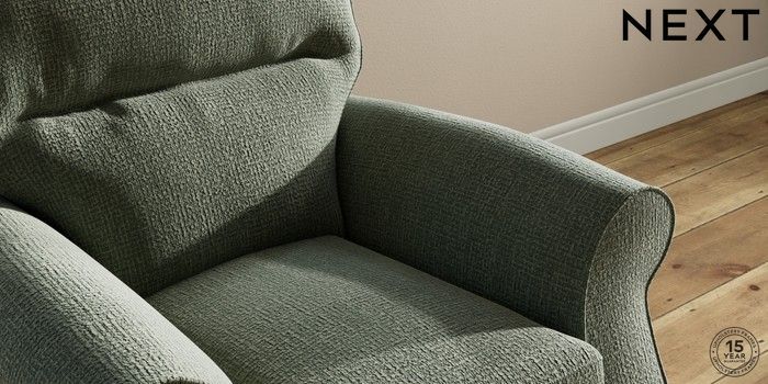 6.12.1 Buy Ashford Highback Small Armchair Chunky Texture Mid Forest Green Modern Turned Metal Cap - Mid from the Next UK online shop Click here to use our accessible website