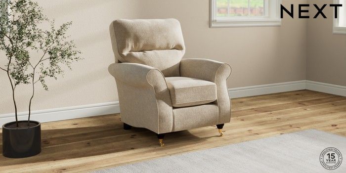 6.12.1 Buy Ashford Highback Small Armchair Chunky Weave Cream Castor - Dark from the Next UK online shop Click here to use our accessible website