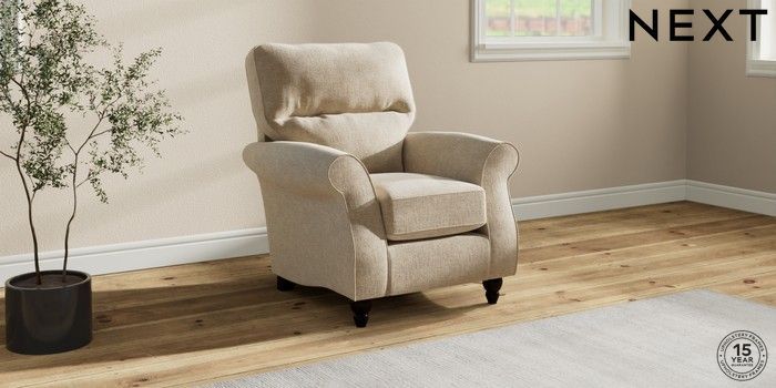 6.12.1 Buy Ashford Highback Small Armchair Chunky Weave Cream Low Turned - Dark from the Next UK online shop Click here to use our accessible website