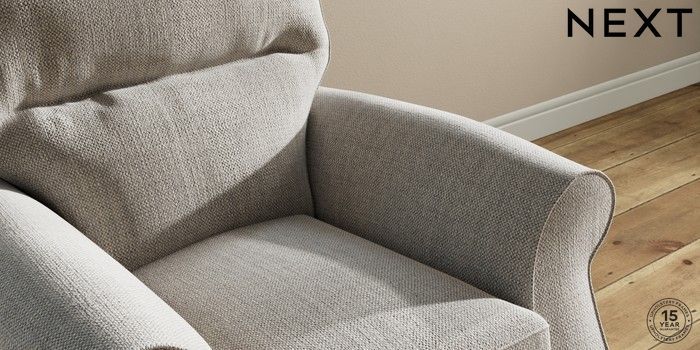 6.12.1 Buy Ashford Highback Small Armchair Chunky Weave Dove Grey Modern Turned Metal Cap - Mid from the Next UK online shop Click here to use our accessible website