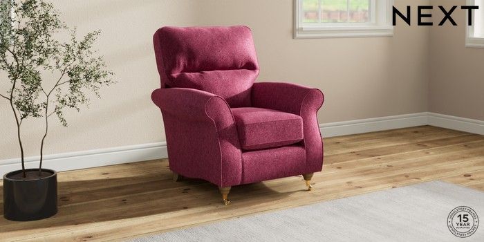 6.12.1 Buy Ashford Highback Small Armchair Cotswold Chenille Dark Raspberry Pink Castor - Light from the Next UK online shop Click here to use our accessible website