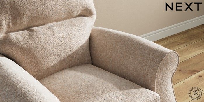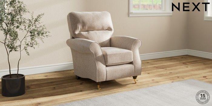 6.12.1 Buy Ashford Highback Small Armchair Cotswold Chenille Light Natural Castor - Mid from the Next UK online shop Click here to use our accessible website
