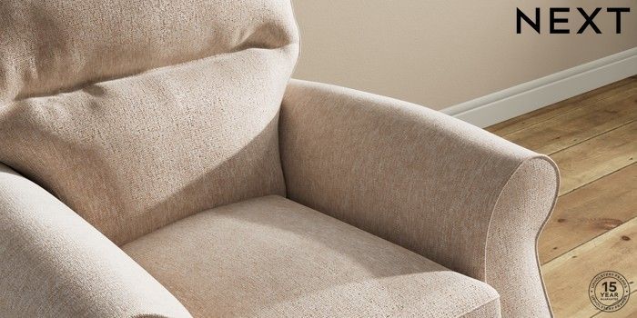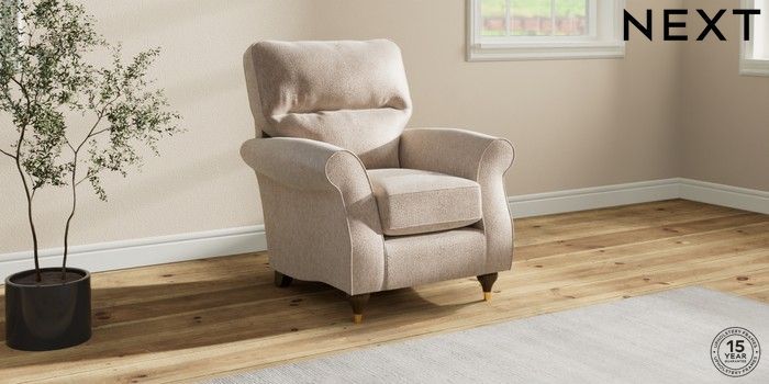 6.12.1 Buy Ashford Highback Small Armchair Cotswold Chenille Light Natural Modern Turned Metal Cap - Mid from the Next UK online shop Click here to use our accessible website