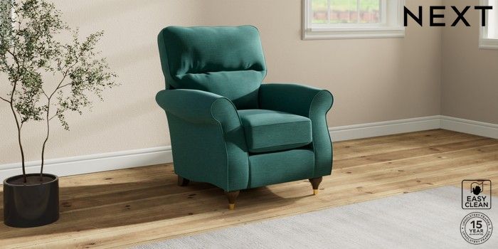 6.12.1 Buy Ashford Highback Small Armchair Fine Chenille Easy Clean Dark Juniper Green Modern Turned Metal Cap - Mid from the Next UK online shop Click here to use our accessible website