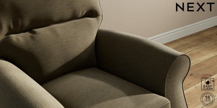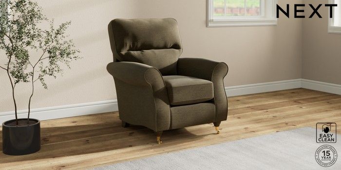 6.12.1 Buy Ashford Highback Small Armchair Fine Chenille Easy Clean Dark Moss Green Castor - Mid from the Next UK online shop Click here to use our accessible website