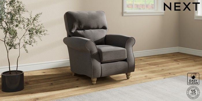 6.12.1 Buy Ashford Highback Small Armchair Fine Chenille Easy Clean Dark Smoke Grey Low Turned - Light from the Next UK online shop Click here to use our accessible website
