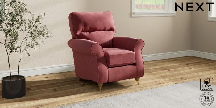 6.12.1 Buy Ashford Highback Small Armchair Fine Chenille Easy Clean Mid Pink Castor - Light from the Next UK online shop Click here to use our accessible website