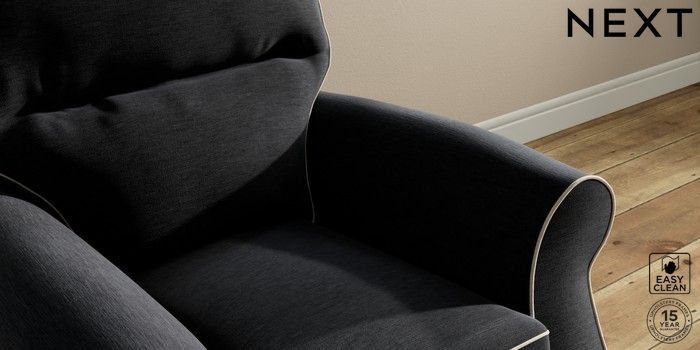 7.3.1 Buy Ashford Highback Small Armchair Fine Chenille with Contrast Black and Oyster Low Turned - Mid from the Next UK online shop Click here to use our accessible website