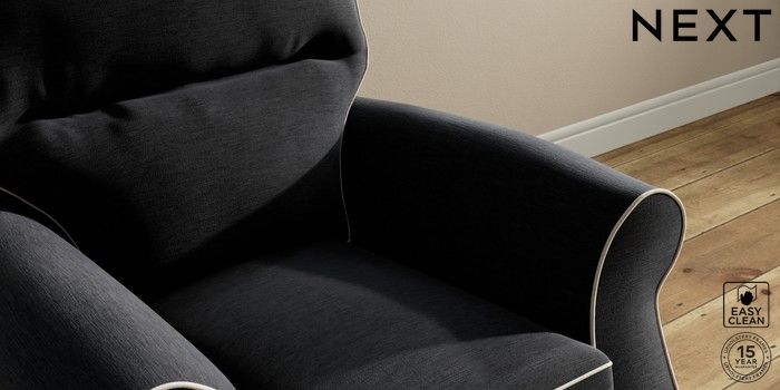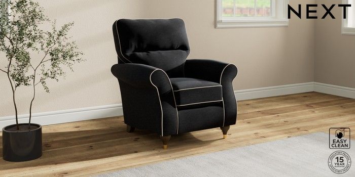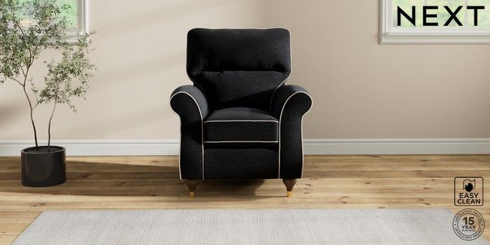 7.3.1 Buy Ashford Highback Small Armchair Fine Chenille with Contrast Black and Oyster Modern Turned Metal Cap - Mid from the Next UK online shop Click here to use our accessible website