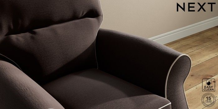 7.3.1 Buy Ashford Highback Small Armchair Fine Chenille with Contrast Chocolate Brown and Oyster Castor - Mid from the Next UK online shop Click here to use our accessible website