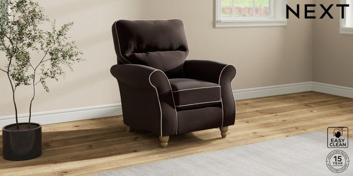 7.3.1 Buy Ashford Highback Small Armchair Fine Chenille with Contrast Chocolate Brown and Oyster Low Turned - Light from the Next UK online shop Click here to use our accessible website