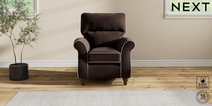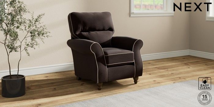 7.3.1 Buy Ashford Highback Small Armchair Fine Chenille with Contrast Chocolate Brown and Oyster Low Turned - Mid from the Next UK online shop Click here to use our accessible website