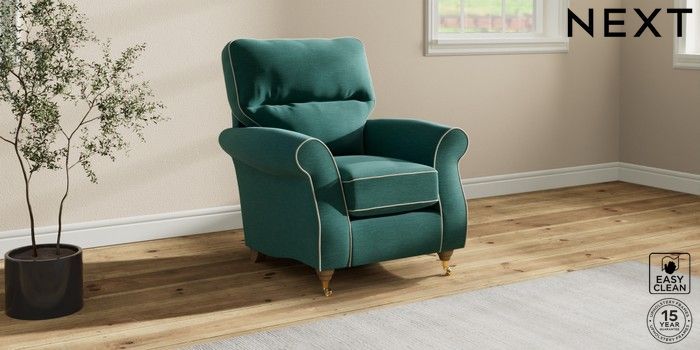 7.3.1 Buy Ashford Highback Small Armchair Fine Chenille with Contrast Dark Juniper Green and Oyster Castor - Light from the Next UK online shop Click here to use our accessible website