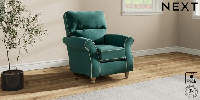 7.3.1 Buy Ashford Highback Small Armchair Fine Chenille with Contrast Dark Juniper Green and Oyster Low Turned - Light from the Next UK online shop Click here to use our accessible website