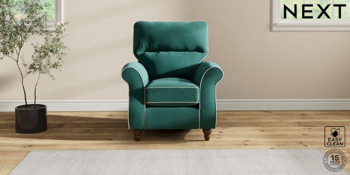 7.3.1 Buy Ashford Highback Small Armchair Fine Chenille with Contrast Dark Juniper Green and Oyster Low Turned - Mid from the Next UK online shop Click here to use our accessible website